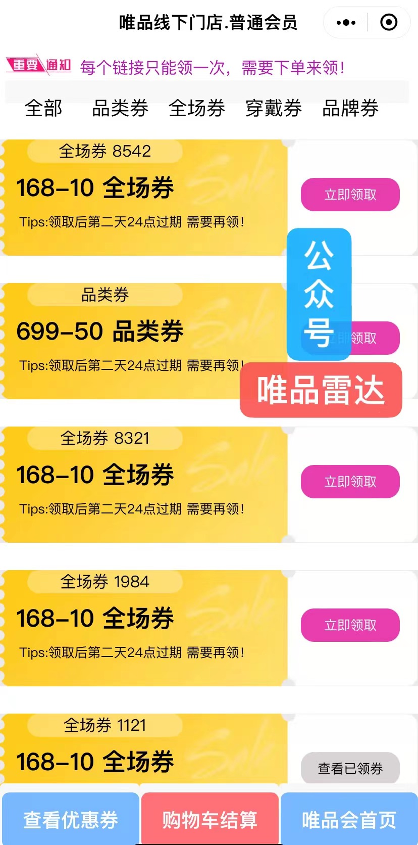 唯品会优惠券免费领取50无门槛