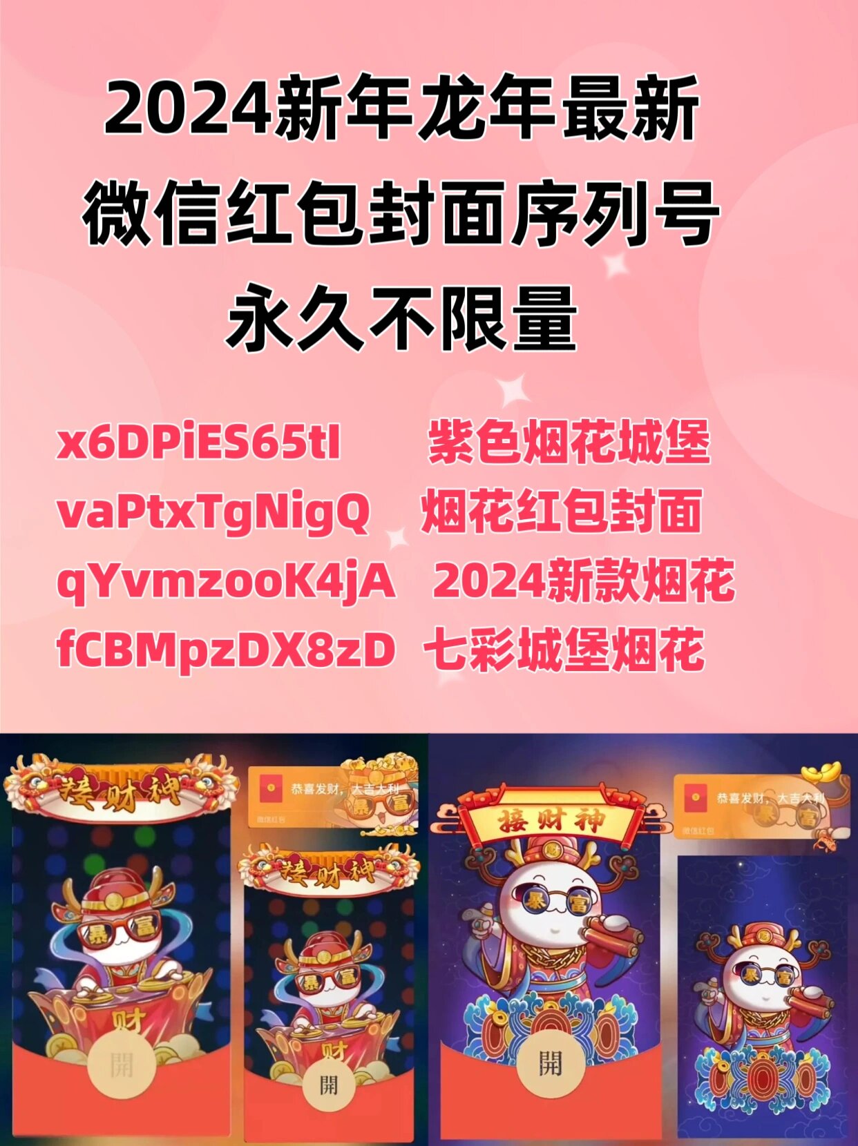避免错过活动多渠道尝试若某一渠道领取失败微信红包封面序列号大全免费,可切换至其他途径如从合作品牌公众号领取,提高成功率及时使用兑换码部分兑换码有效期较短,领取后需尽快在微信红包封面设置中兑换,避免过期失效通过以上方法,用户可安全高效地获取微信2025免费红包封面,为新年互动增添个性化元素;xRkstGVsdxX公主收下微信红包封面序列号大全免费我微信红包封面序列号大全免费的爱cYvTCyLVeuX迪士尼烟花suWAD1XLrwI紫色烟花封面iuTDueXq79B紫色方特烟花yex1BXmTAnP生日红包封面nWNXnV0APvX金色龙宝a308LeFlnyX特定主题封面三序列号使用方法 打开微信确保你的微信版本是最新的,以便能够正常使用红包封面功能选择发送红包;1手机打开微信,选择发红包的好友,进入聊天页面2进入聊天界面后,点击输入框右边的“+”,选择“红包”3打开后可以看到“红包封面”,点击右上角的添加,输入序列号即可以上就是关于好看的红包封面的领取序列号大全的相关介绍,大家可以了解下,更多的有关微信红包封面序列号领取关注本站分享;让我们看看微信红包封面序列号大全免费2023,以获得一个漂亮的红包封面微信红包封面序号免费1 kGnkrbw5a7N 2 ktNN3JsdcaC公司 3 eFBZ6V88НВV型 4 CFxEFazuBkV 5 bkUYBfGud6Z公司 6 sehQwDyLXml 7 edraeLcpzgT公司 8 xptmF第8BA段 9 yJAyquWVYvS公司 10 oU9;目前没有可直接分享的微信红包封面序列号,但可通过官方渠道免费领取以下为具体说明领取入口可通过指定链接微信红包封面序列号大全免费?BIZ=ECOMMERCE进群,第一时间获取免费红包封面群内会定期更新封面资源,覆盖多种主题和风格注意事项禁止购买;1打开微信寻找一位要发送红包的好友,点击下方的红包2点击红包封面,可以自定义更换微信红包3点击右上角的添加,修改红包封面样式4输入领取序列号,点击确定5领取成功后即可获得专属微信红包封面,发红包的时候大家都可以看见2021免费微信红包封面序列号分享ceaN3E48;2021微信红包封面最近被小伙伴们玩的不乐乎,纷纷都在求2021微信红包序列号,但网上很多微信红包封面序列号都是收费的,其实,这些都是免费的,根本不要钱下面,我们将为您带来2021微信红包封面11位兑换码不限时间最新,喜欢可以收藏转发哦一微信红包封面11位兑换码不限时间最新 一般微信红包封面序列号很容易被抢完,建议大家关注。