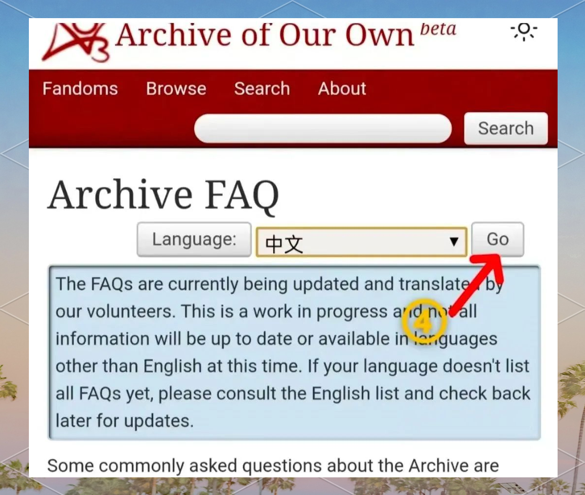 首先,访问AO3的官方网站,网址为”或类似的语言设置选项,这通常位于页面的右上。