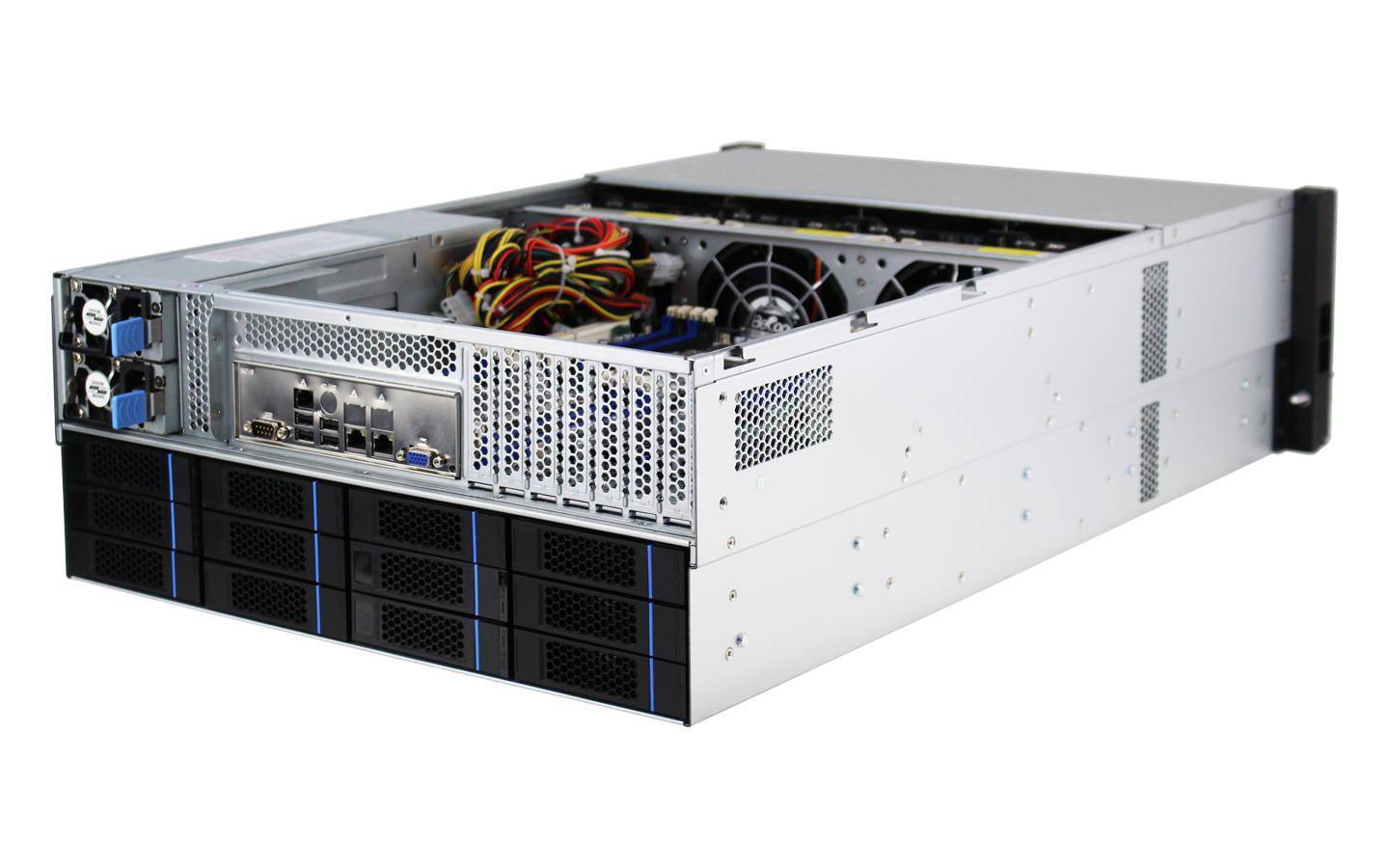 4、Supermicro Storage A+ ASG1115SNE316R E3S 服务器评测总结如下基本配置该服务器是一款单路EPYC 9004系列服务器,配备16U机箱,支持多达3个热插拔E5S Gen1 SSD,同时也可实现存储密集型配置,支持多达16个E3S SSD,且不影响机箱背面的PCIe扩展选项扩展性机箱支持64个PCIe通道,用于跨两个。