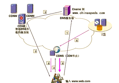 CDN节点服务器应答请求,将内容返回给客户端缓存服务器一方面在本地进行保存以备以后使用,另一方面把获取的数据返回给客户端,完成数据服务过程CDN网络的组成要素 智能调度DNS是CDN服务中的关键系统,负责处理用户的域名解析请求,通过一组预先定义好的策略,将最适合用户的节点地址提供给用户缓存。