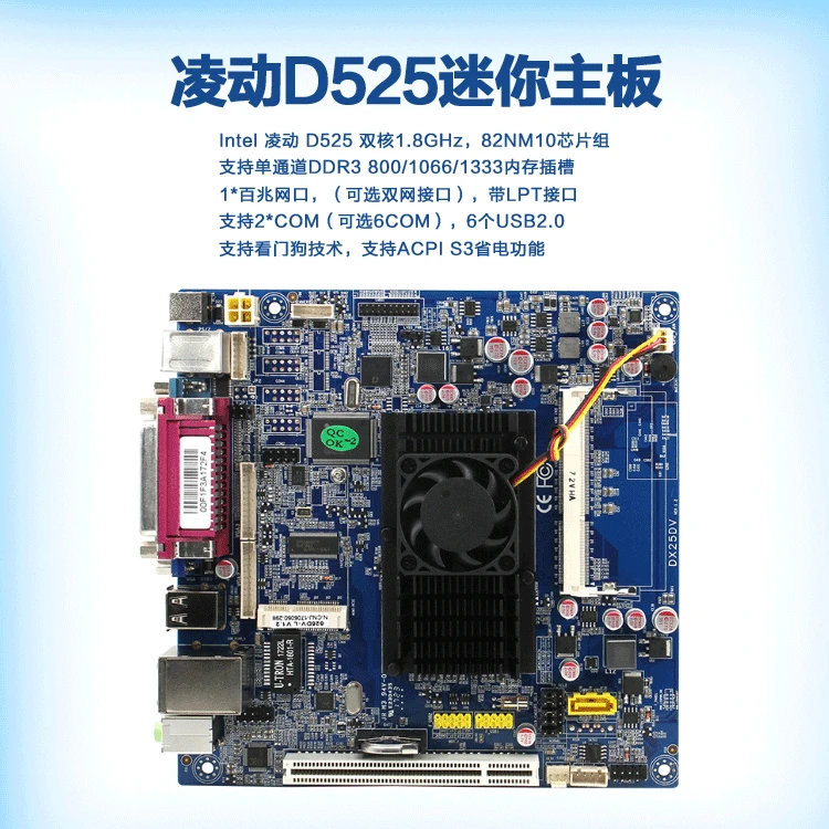 itxd525atpcd2主板核心性能参数以低功耗工业级设计为核心,适配嵌入式场景,具体规格如下一核心硬件配置1 处理器板载英特尔凌动D525Atom D525,45nm制程,主频18GHz,双核四线程,二级缓存1MB,TDP仅13W2 芯片组搭配Intel ICH8M部分型号为NM10,构成二芯片。